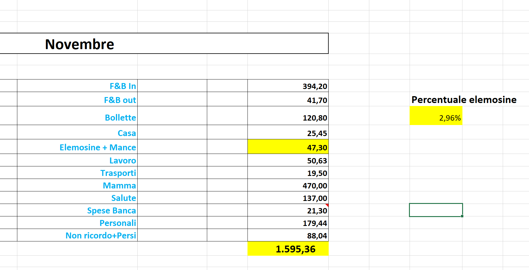 Gli obiettivi governativi puntano allo 0,7% del Reddito Nazionale Lordo entro il 2030. Io sono mediamente sopra il 2% del totale delle mie spese mensili!